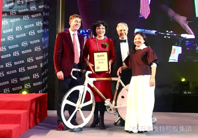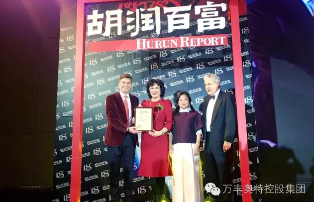 11月4日,胡润百富十八周年庆典暨百富榜颁奖典礼在北京诺金酒店举行,万丰集团董事局陈爱莲主席荣膺2016最受尊敬企业家。