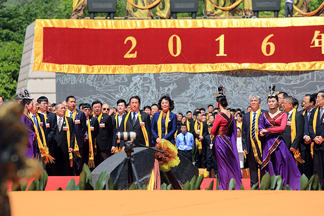4月19日,2016年公祭大禹陵典礼在绍兴大禹陵祭祀广场隆重举行,来自国家部委、省人大、省政府和省政协的有关领导及港澳同胞、台湾同胞、海外侨胞及越商代表出席典礼。万丰奥特控股集团董事局主席陈爱莲女士作为祭祀主宾在典礼上为大禹陵敬香。