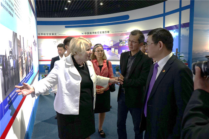 黛博拉?马修斯一行首先参观了上市公司园区、万丰广场企业展厅,详细了解了万丰的发展战略、产业情况、企业文化建设等内容。随后,黛博拉?马修斯一行赴万丰航空特色小镇,参观了万丰航空展厅,对万丰航空产业发展和万丰航空特色小镇建设情况进行了详细了解。